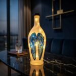 Enchanting handcrafted lighted bottle featuring delicate blue and gold angel wings that glow with a warm, heavenly light. This luminous piece of art radiates serenity, beauty, and spiritual elegance, creating a peaceful and magical ambiance in any space.