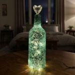 Vibrant handcrafted lighted bottle featuring a stunning mosaic of fiery red, green, and golden patterns that glow with rich, warm light. Topped with a sparkling crystal stopper, this dazzling piece radiates joy, energy, and elegant artistic charm to any space.