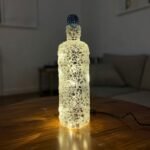 Vibrant handcrafted lighted bottle bursting with fiery red, blue, yellow, and green abstract patterns that radiate a dazzling multicolored glow. Topped with a sparkling crystal stopper, this luminous piece of art creates a joyful, energetic ambiance and instantly becomes a stunning focal point in any space.