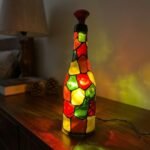 Abstract stained glass painted glass bottle with decorative glass stopper. Comes with lights
