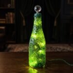 Vibrant handcrafted lighted bottle bursting with fiery red, blue, yellow, and green abstract patterns that radiate a dazzling multicolored glow. Topped with a sparkling crystal stopper, this luminous piece of art creates a joyful, energetic ambiance and instantly becomes a stunning focal point in any space.