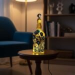 Abstract stained glass painted glass bottle with decorative glass stopper. Comes with lights