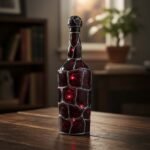 Burnt orange and black painted glass bottle with dark orange angular stopper. Comes with lights.