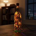 Abstract stained glass painted glass bottle with decorative glass stopper. Comes with lights