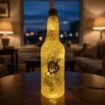 Abstract stained glass painted glass bottle with decorative glass stopper. Comes with lights