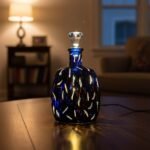 Abstract stained glass painted glass bottle with decorative glass stopper. Comes with lights