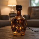 Abstract stained glass painted glass bottle with decorative glass stopper. Comes with lights