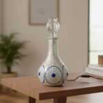 Abstract stained glass painted glass bottle with decorative glass stopper. Comes with lights